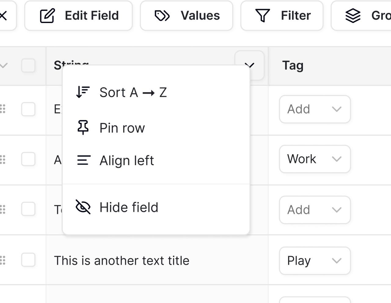 If the arrow get slected, is on top the sorting option, if the user select the sort option it get sort A to Z once it get sorted, get the user the option to sort Z to A