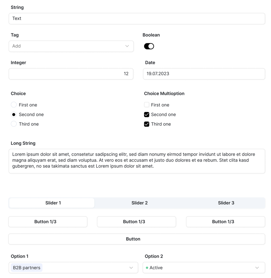 Edit record layout The user can change the position of open records and arrange multiple fields, such as three fields, on the same line. The user can also hide elements.